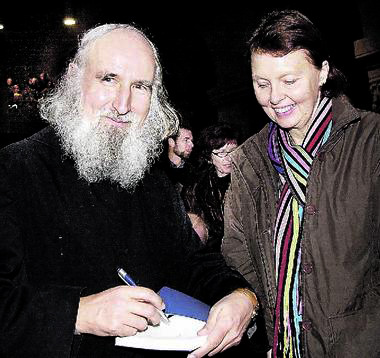 grauen Haar und Vollbart signiert Buch um Buch. Allein 130 Titel sind